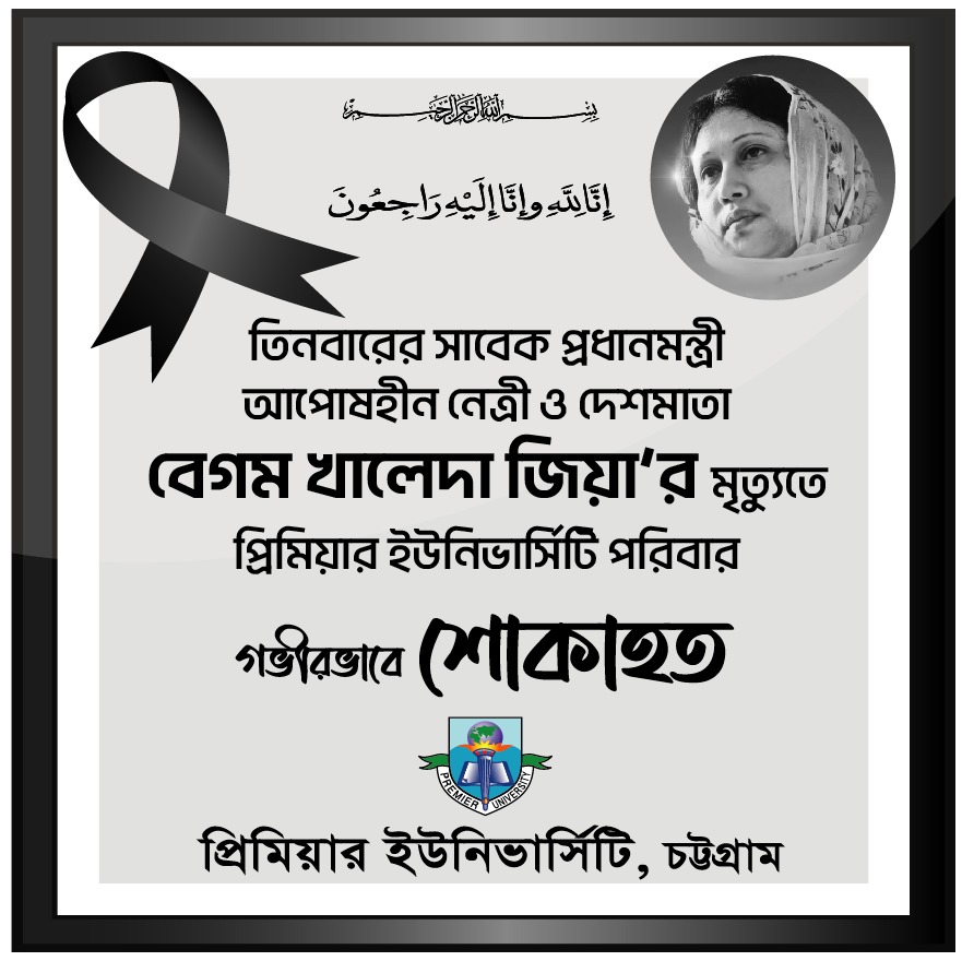 সাবেক প্রধানমন্ত্রী ও দেশনেত্রী বেগম খালেদা জিয়ার মৃত্যুতে প্রিমিয়ার ইউনিভার্সিটি উপাচার্যের শোক ।